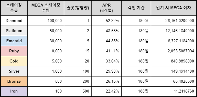 * 스테이킹한 MEGA와 만기 시 이자는 락업 기간이 지난 후 클레임할 수 있습니다.
