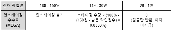* 언스테이킹 수수료는 잔여 락업일이 적을수록 선형적으로 감소합니다.