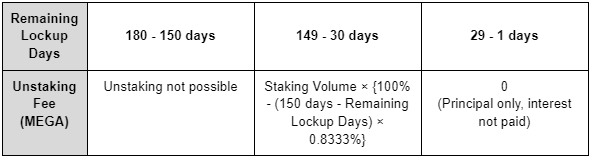 * MEGA collected as an unstaking fee will be saved in the community liquidity treasury.